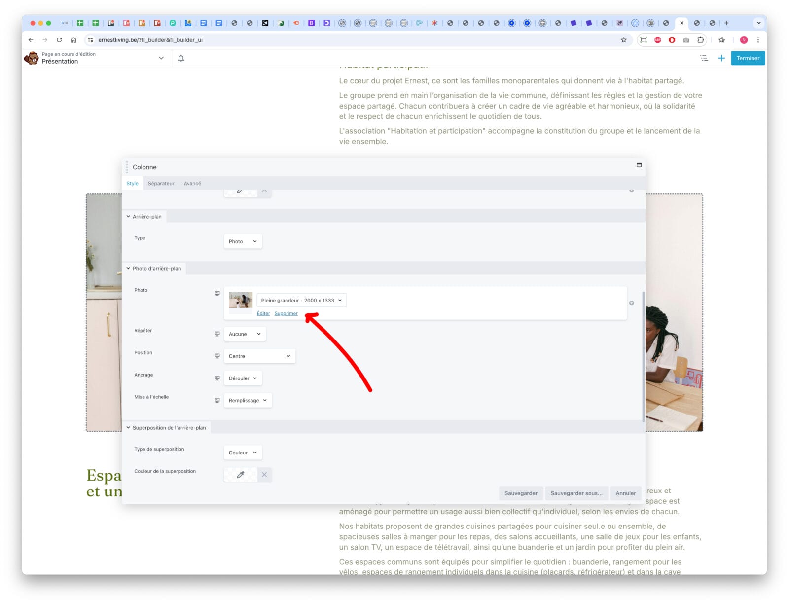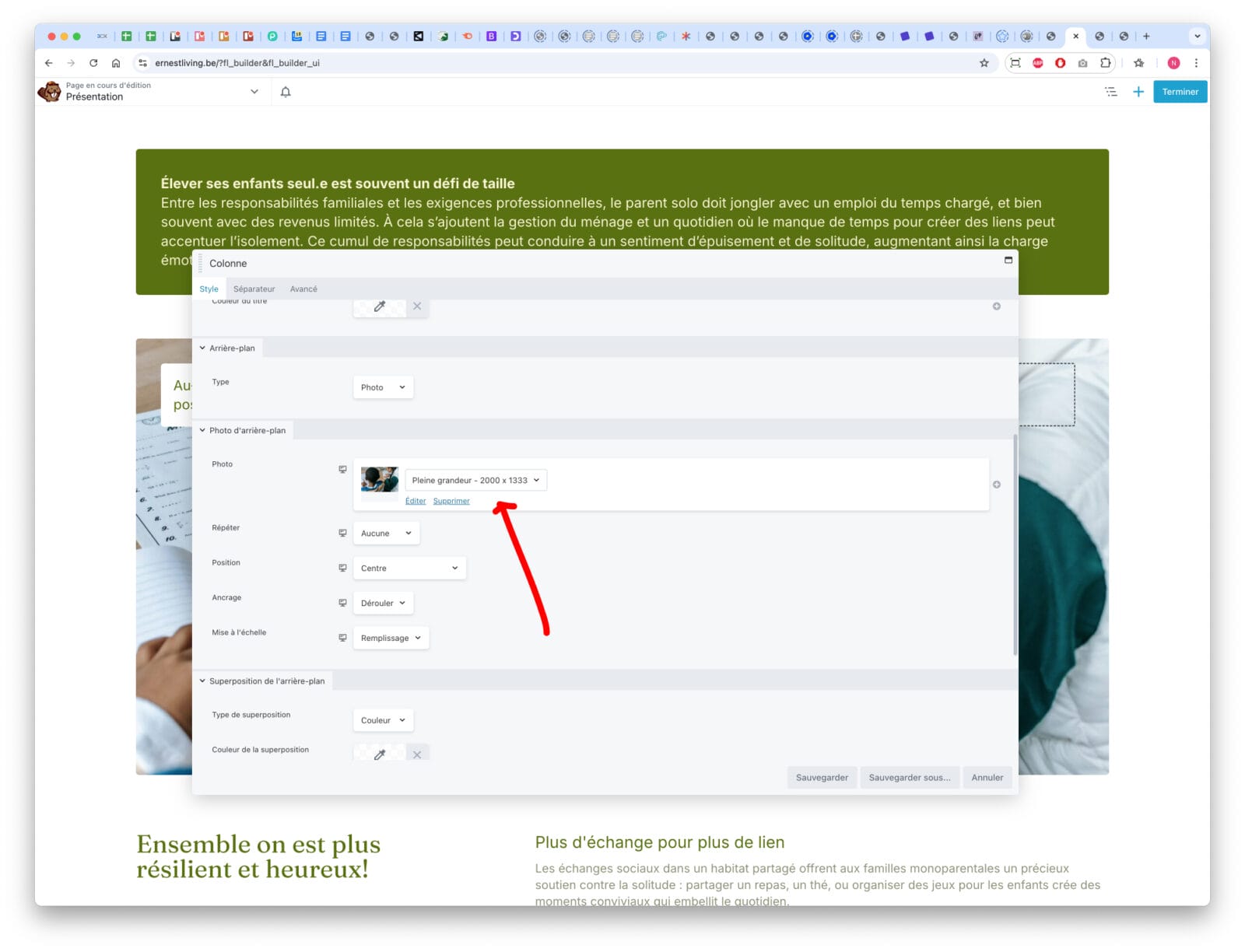 Selon la conception de votre site, certaines photos sont placées en arrière-plan d'une rangée ou d'une colonne.